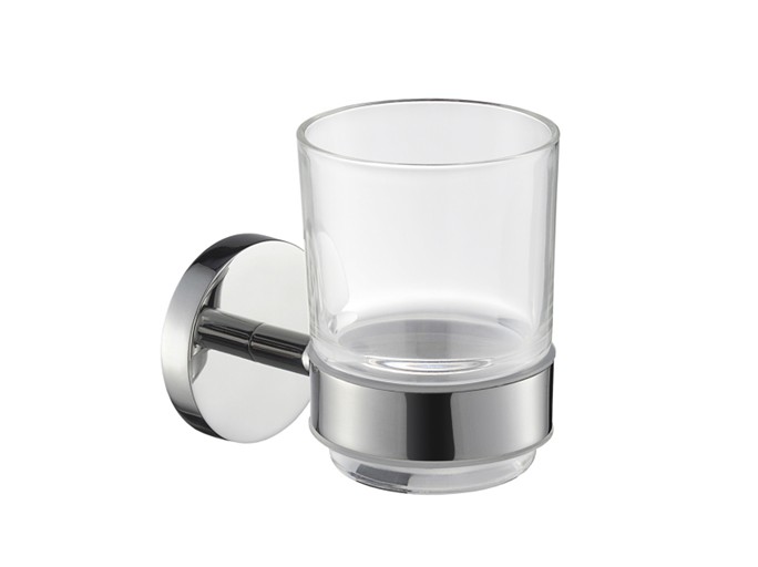 Soporte de vaso para montaje en pared, acero inoxidable, superficie de alto brillo, vaso de cristal, tapa redondeada para ocultar los tornillos de fijación con orificio en la parte inferior para facilitar el montaje, incluye pasadores y tornillos de acero inoxidable.