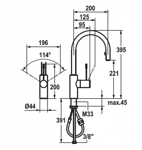 MONOMANDO COCINA CON CAÑO EXTRAIBLE ONO KWC Ref.10151102000FL
