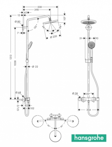 HANSGROHE SHOWERPIPE CROMA 220 COLUMNA DUCHA TERMOSTATICA
