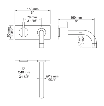 MONOMANDO LAVABO MURAL VOLA Ref.112