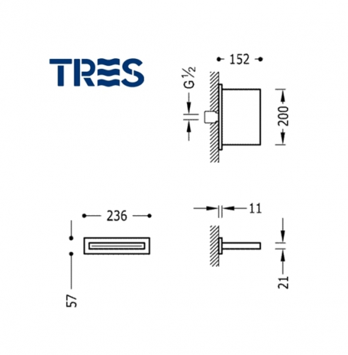 ROCIADOR DUCHA CASCADA A PARED GRIFERIA TRES Ref.29990304
