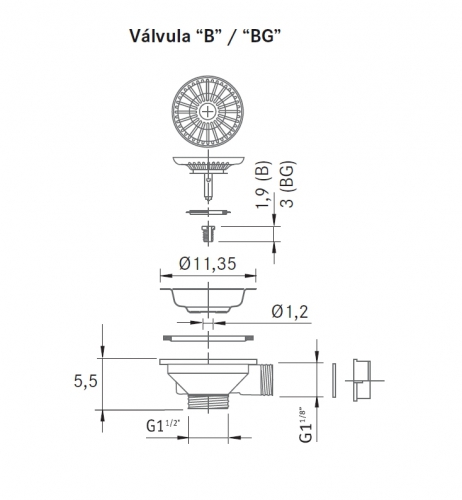 VÁLVULA "B" 3"1/2 CON CESTILLO FRANKE