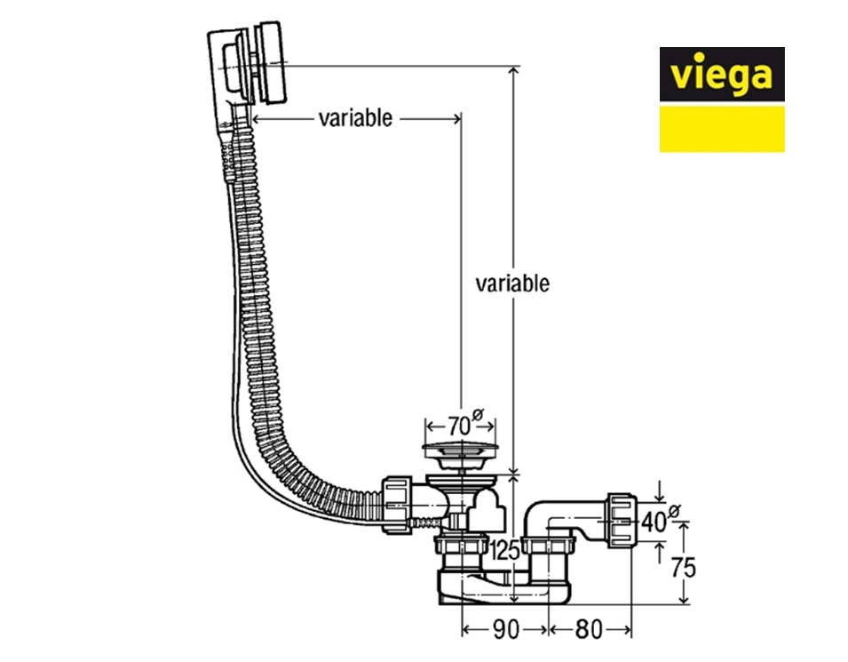 VALVULA y REBOSADERO BAÑERA SIMPLEX VIEGA Ref.106447