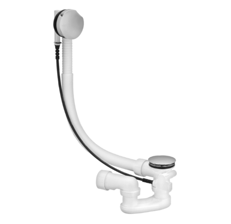 Tubo de rebosadero flexible, maneta de giro cromada, tapón de la válvula cromado, sifón, válvula de acero inoxidable