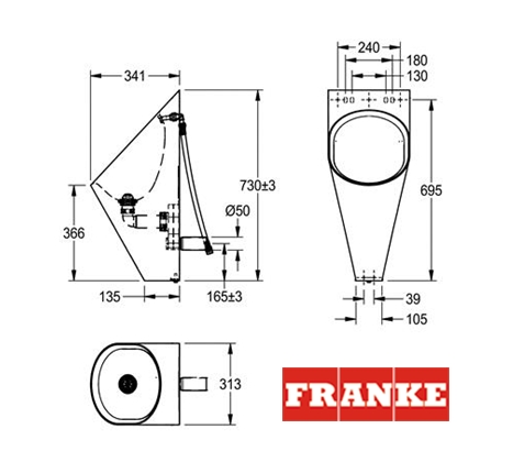 URINARIO SUSPENDIDO ACERO INOX CAMPUS FRANKE KWC Ref.CMPX538-2000071872