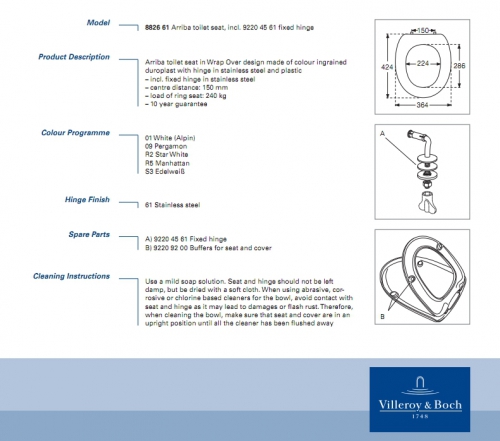 VILLEROY & BOCH ARRIBA TAPA INODORO