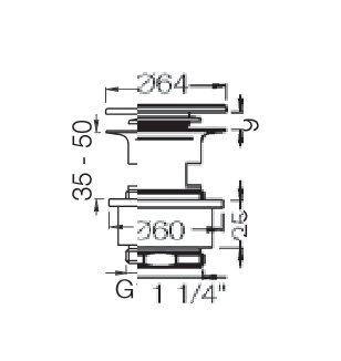 VALVULA MANUAL de 1¼" para LAVABO CON REBOSADERO