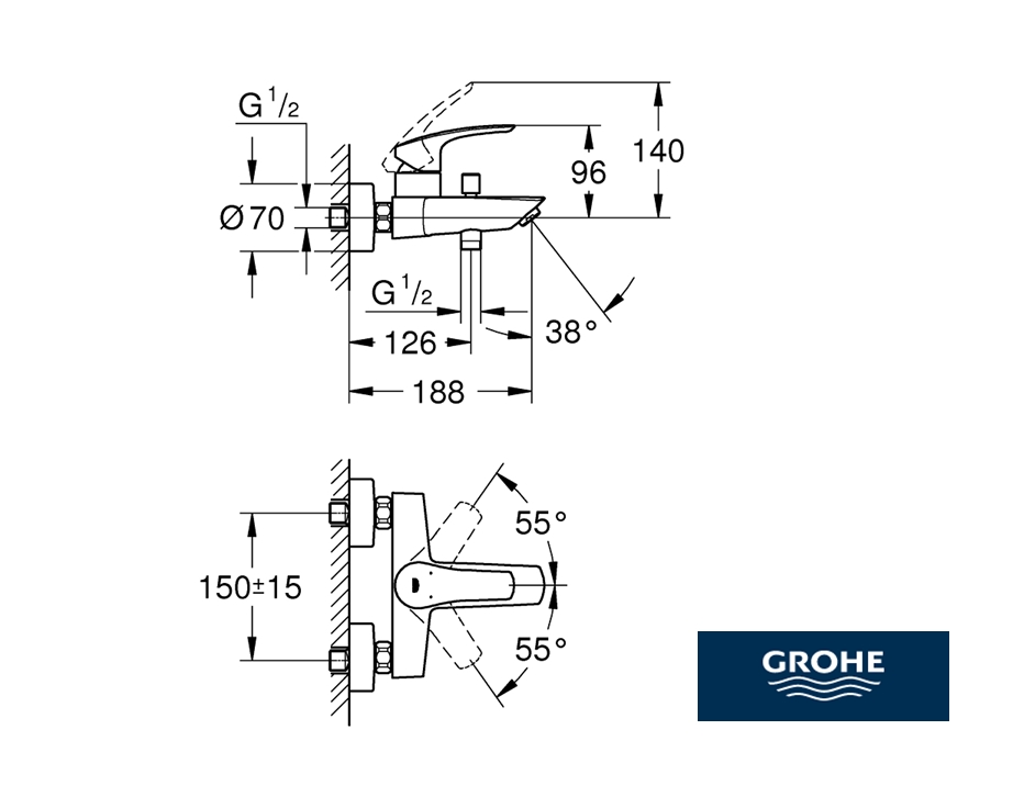 Monomando de BAÑO-DUCHA 1/2" EUROSMART GROHE Ref.33300003